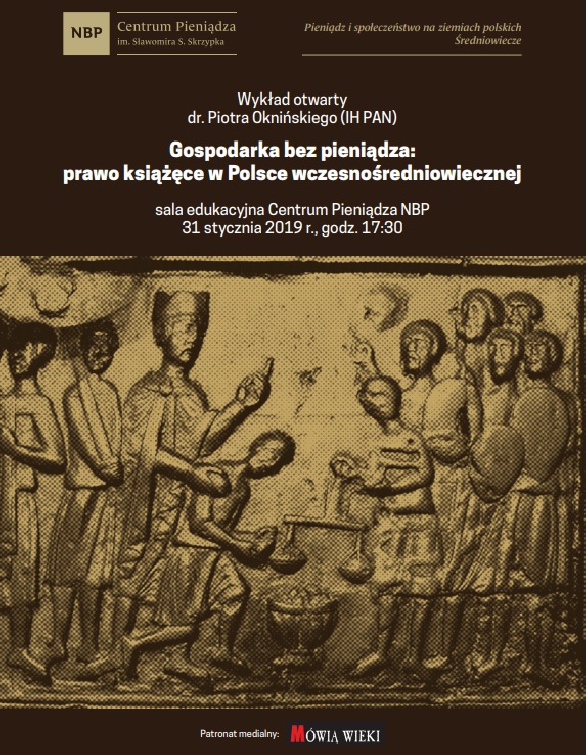 Redakcja "Mówią Wieki" serdecznie zaprasza na cykl wykładów organizowanych przez Narodowy Bank Polski. Centrum Pieniądza NBP inauguruje cykl spotkań poświęconych historii społeczno- gospodarczej ziem polskich w średniowieczu. 31 stycznia 2018 r. pierwszy wykład „Gospodarka bez pieniądza: prawo książęce w Polsce” wygłosi dr Piotr Okniński, historyk specjalizujący się w historii społecznej średniowiecza, pracownik Zakładu Studiów Średniowiecznych Instytutu Historii PAN. Wykłady będą się odbywać w ostatni czwartek stycznia, lutego i marca w sali edukacyjnej Centrum Pieniądza NBP. Zapraszamy o godz. 17.30.